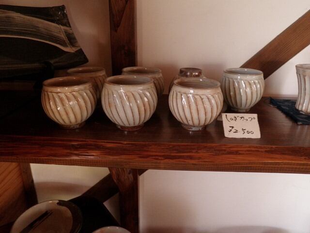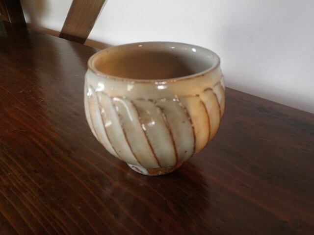 唐津焼の代表的な技法、「しのぎ」を使った湯呑です。
